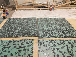 The biggest build for this series was the french petrol station which we decorated and aged down in situ in the Forest of Dean. I also honed my wallpapering skills on this job using various patterned vintage wallpaper across several sets, as well as wood graining and faux terazzo. We also completely revamped Rhondda Bowl to become Moordale Lanes.